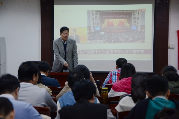 10月18日上午,中国共产党第十九次全国代表大会在北京人民大会堂隆重开幕。德赢vwin体育官网登录广大师生高度关注这一历史性盛会,通过各种媒体收听收看大会实况直播。德赢vwin体育官网登录分党委书记郭家宏和近百名师生党员和积极分子代表一起,在主楼600教室通过视频观看了大会现场直播。