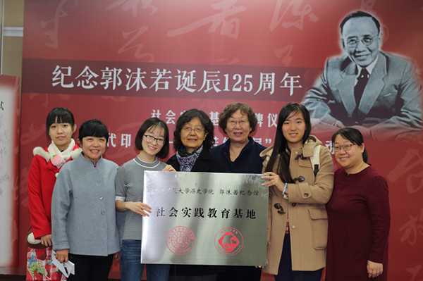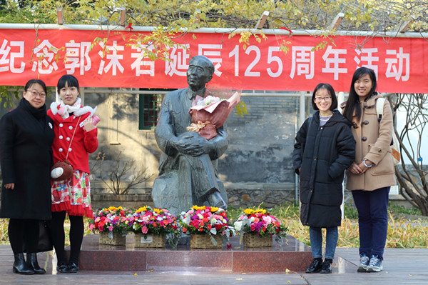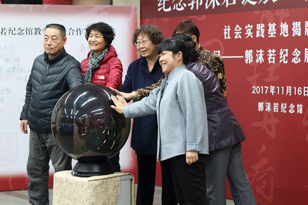 为纪念郭沫若诞辰125周年,11月16日下午,德赢vwin体育官网登录分团委书记胡小溪、历史志愿讲解队队长杨丹、副队长王佳玥前往郭沫若纪念馆参加教学实践基地挂牌暨“时代印记”巡展启动仪式。北京“8+”名人故居纪念馆的领导和郭沫若先生的后人共同为“时代印记——郭沫若诞辰125周年纪念展”启动揭幕仪式。本次展览为郭沫若在中国的5个纪念地首次共同联合举办,计划将在未来的一年中进行巡展。