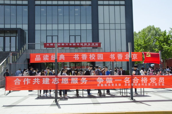 2016年4月22日,正值第20个世界读书日前夕,德赢官网本科生第二党支部与后勤机关党支部以“合作共建志愿服务、争做合格党员”为宗旨,在邱季端体育馆北侧协助后勤管理处成功开展“书香校园、万本图书赠送”活动,圆满完成共建。德赢官网本科生第二党支部党员、积极分子,以及后勤机关党支部志愿者共40余人参加了此次活动。校长助理张强出席活动,与师生共同交流读书选书心得。