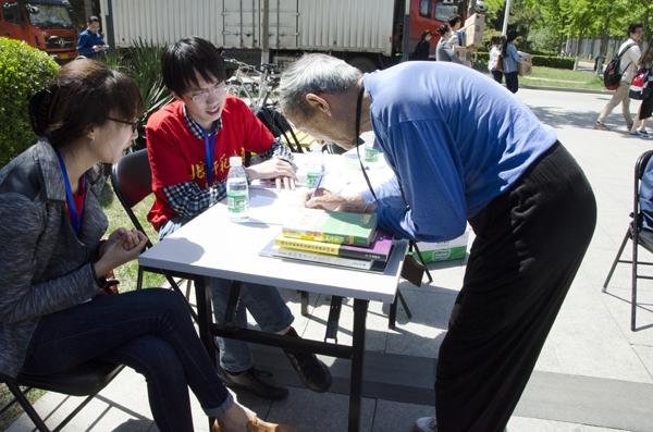 4月22日上午9:30,李智豪、郑伊楠等20名党员、积极分子志愿者准时来到邱季端北侧,在听取后勤管理处老师传授的工作方法后正式开始工作。尽管天气炎热,但同志们志愿奉献、为师生服务的热情却没有减少,在自己的岗位上认真做着书籍赠送的登记工作。经统计,当天共有2000余名师生参与活动,领取了图书,感受到了学校浓厚的书香氛围与党员志愿者们全心全意服务的真诚态度。