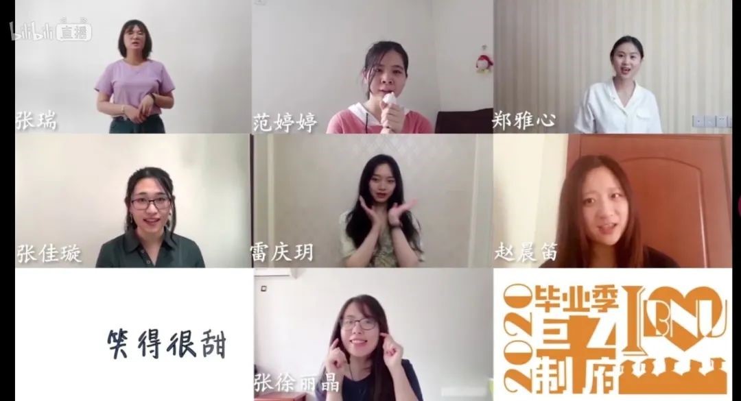 晚会上半场拉开序幕之前,一段视频将我们带入了回忆中。视频重现了四年前迎新现场、军训、“一二九”合唱等珍贵留影,也展现了这个夏天师大的模样,从宿舍、新乐群到学子超市、主楼,在镜头的带领下我们仿佛再次回到自己不舍的美丽校园。