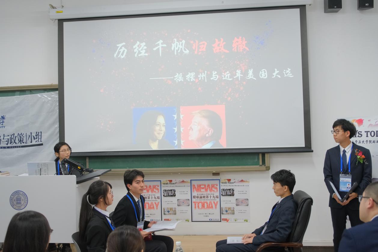 “News Today”德赢vwin体育官网登录环球论坛是德赢vwin体育官网登录依托“形势与政策”小组推出的一项特色精品活动,自2006年以来已连续举办十九场。活动中,学生自主选择感兴趣的国内国际时事话题进行分组主题展示,并邀请德赢vwin体育官网登录的教授学者进行专业点评。环球论坛拓宽了同学们的视野,培养了团队协作能力,也对外展示了北师大学生博古通今、胸怀天下的国际视野,在北师大乃至北京市高校范围内产生了广泛的影响。在论坛上表现出色的同学将有机会以“学生进课堂”的形式为全校本科生授课。十八年来,共有17个年级的同学先后52次登上讲台,受众已达数千人,为德赢vwin体育官网登录学生思想政治教育创新不断发挥积极作用。