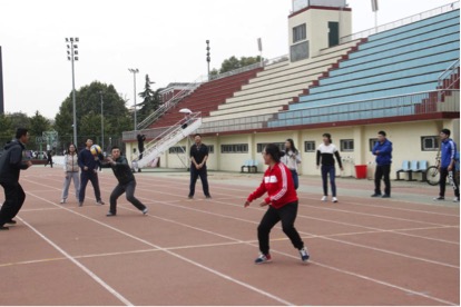 最后的项目为“躲避球”。报名的同学被分成两组,每组派两名队员在外场接应,每当有人被球打中,即加入本组的外场队伍中。本场比赛十分激烈,经过一系列攻防后,一组选手凭借着场内和场外队员的默契配合获得了最终的胜利。