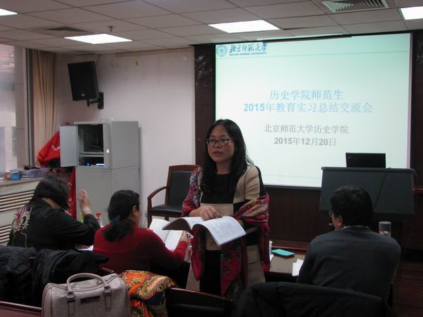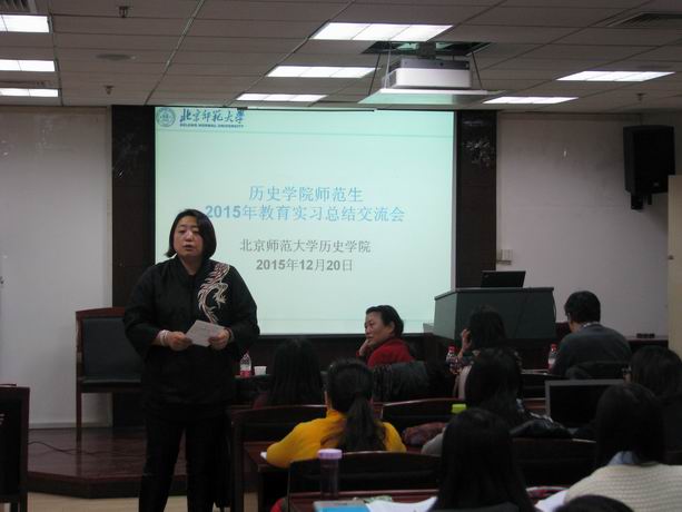 2015年12月20日下午,德赢vwin体育官网登录2012级师范生教育实习总结交流会在主楼600顺利举行。北京市丰台区教研员孙楠,海淀区教研员赵文龙、朝阳区教研员曹卫东、东城区教研员刘玉群、西城区教研员张逸红、德赢官网郑林教授、侯桂红老师、李凯老师莅临指导。2012级免费师范生、普通师范生、2013级免费师范生参与了本次活动。本次会议旨在展示2015年秋季教育实习成果,交流总结教育实习经验,促进学生历史教学能力的提升。