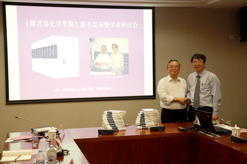 2018年5月26日上午,由华夏出版社、德赢vwin体育官网登录、德赢vwin体育官网登录史学理论与史学史研究中心共同举办的“《陈其泰史学萃编》新书发布暨学术研讨会”在德赢vwin体育官网登录京师学堂第五会议室隆重召开。德赢vwin体育官网登录资深教授刘家和、资深教授瞿林东,华夏出版社黄金山社长,中国社会科学院历史研究所彭卫研究员、北京大学历史学系徐凯教授、中国人民大学德赢vwin体育官网登录牛润珍教授、中国社会科学院世界历史研究所吴英研究员,德赢vwin体育官网登录张越教授、汪高鑫教授、周文玖教授、李锐教授以及北京市哲学社会科学规划办公室、《人民日报》、《光明日报》、《新华文摘》、《中国社会科学报》等单位的30余名专家学者出席了会议。