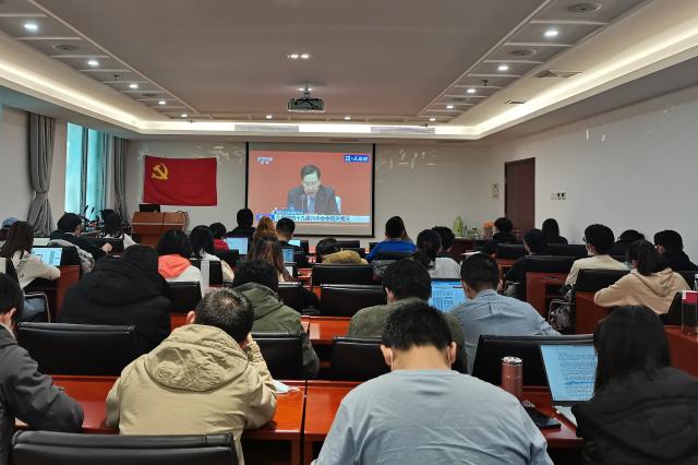 2021年11月12日上午10时,中共中央举办新闻发布会解读党的十九届六中全会精神。德赢vwin体育官网登录部分团学骨干在团委的组织下,参加学院党委统一组织的直播观看活动。