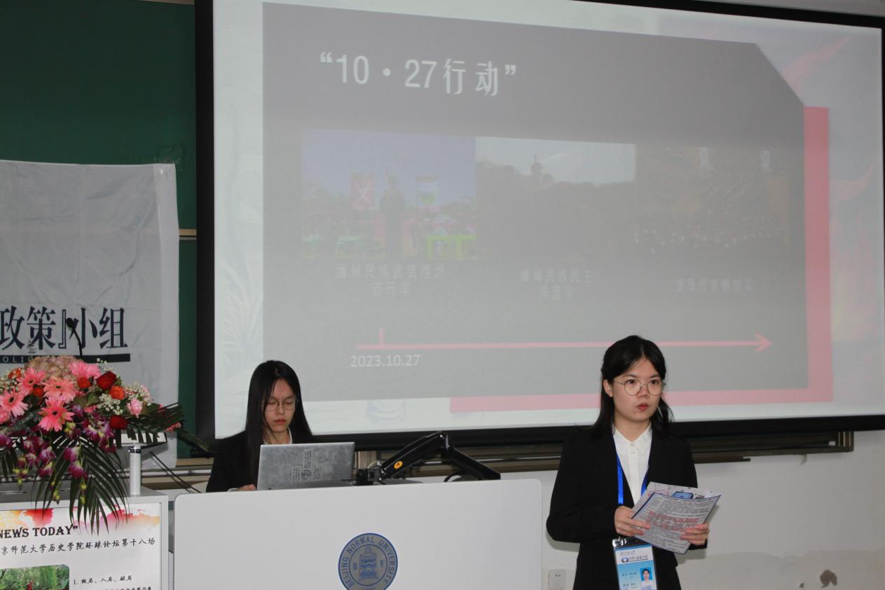 活动中,“形势与政策”小组新成员分为三组,围绕缅甸族群关系、智利与拉美粉红浪潮、“蓝白合”破局等国内、国际热点话题,结合历史与现实进行主题展示。