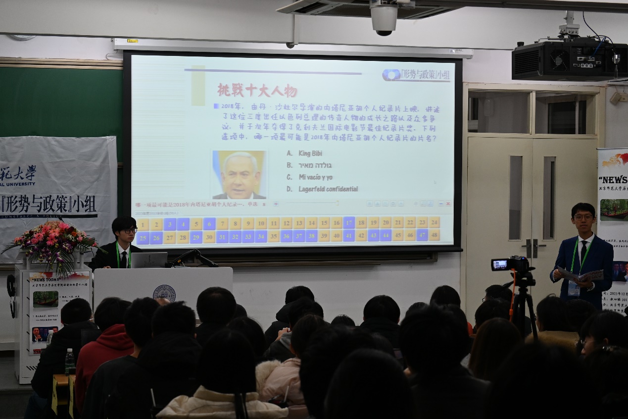 “News Today”德赢vwin体育官网登录环球论坛是德赢vwin体育官网登录依托“形势与政策”小组推出的一项特色精品活动,自2006年以来已连续举办十八场。活动中,学生自主选择感兴趣的国内国际时事话题进行分组主题展示,并邀请德赢vwin体育官网登录的教授学者进行专业点评。在论坛上表现出色的同学将有机会以“学生进课堂”的形式为全校本科生授课。环球论坛拓宽了同学们的视野,培养了团队协作能力,也对外展示了北师大学生博古通今、胸怀天下的国际视野,在北师大乃至北京市高校范围内产生了广泛的影响。