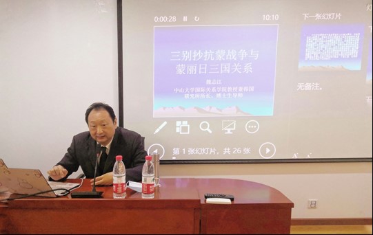 魏志江教授首先阐释了“别抄军”的概念,并通过史料解读剖析了“别抄军”的起源和性质变化。“三别抄”抗蒙战争不仅是朝鲜史浓墨重彩的一笔,更对蒙丽日三国关系产生了重要影响。三别抄抗蒙战争是13世纪东亚史上的重大事件,但是国内学术界对此研究十分薄弱,仍然还存在很大研究空白留待国内学者填补。讲座的最后同学们通过提问的方式就讲座内容与魏志江教授进行沟通交流,讲座在热烈的气氛中结束。魏教授的讲座深入细致,对于我们了解历史上的中朝日曲折复杂的三国关系极有帮助。