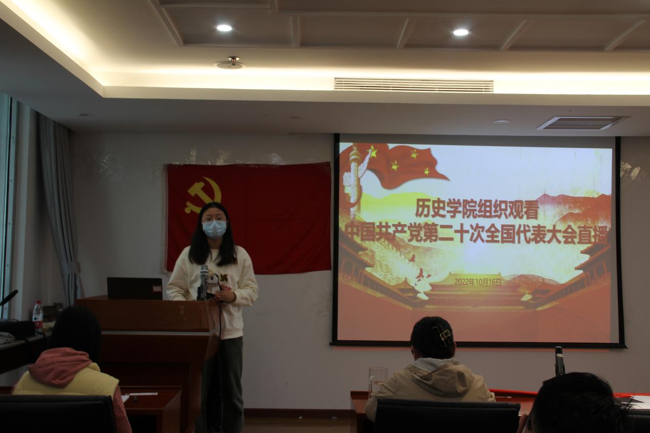 2022级硕士研究生党支部徐晓枫:现场收看总书记的报告,感到非常振奋和由衷的自豪。在报告中,习近平总书记对青年发出希望和号召,“青年强,则国强”“让青春在全面建设社会主义现代化国家的火热实践中绽放绚丽之花。”因此,在新征程上,作为青年学生要坚定历史自信,勇毅前行,为新时代发展注入生机与力量。