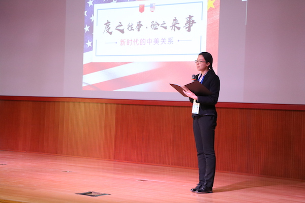 第一组代表、德赢vwin体育官网登录2017级张雪妍同学的展示题为《度之往事,验之来事——新时代下的中美关系》。她指出:作为当今世界上最重要的双边关系之一,中美关系的冷暖关乎世界和平与发展大局。两强关系处理不易,从奥巴马执政八年到如今的特朗普政府,中美关系总体趋好,但也遭遇了种种曲折。从此次特朗普访华看,美国已经充分意识到了中美关系的重要性以及中美合作共赢的必要性,与中国在“朝核问题”、经贸往来等重要问题上达成了共识。张雪妍同学最后指出,虽然中美关系中仍存在着一些问题和阻碍,但中国作为一个负责任的大国,将会继续致力于推动双方合作,共同促进世界和平。