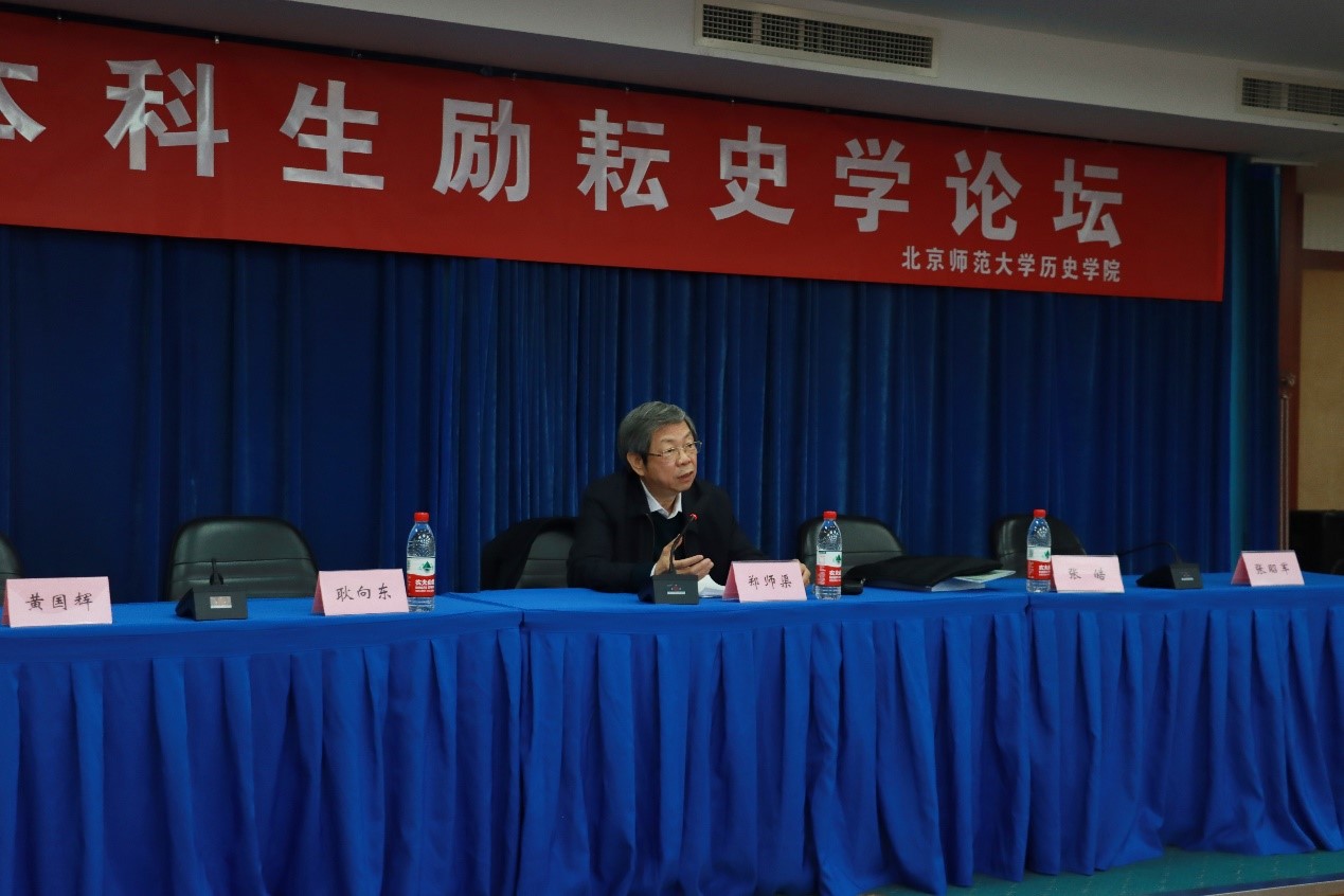 10月23日上午9时整,论坛开幕式在京师大厦第六会议室举行。德赢vwin体育官网登录副院长黄国辉教授主持开幕式,德赢vwin体育官网登录党委书记耿向东研究员、院长张皓教授、张昭军教授分别致辞,郑师渠教授、论坛评议老师和其他嘉宾出席开幕式。耿书记在致辞中传达了习近平总书记关于开展历史研究,弘扬中华优秀传统文化的重要指示精神,并结合德赢vwin体育官网登录的“红色基因”,回顾了北师大历史学科百年来学术风貌、精神气质传承演进的过程,鼓励同学们坚守学术初心、为国家和民族的振兴做出贡献。张院长指出,北师大德赢vwin体育官网登录具有悠久历史与深厚的学术积累,极其重视本科生的培养,希望青年学子可以积极投身于历史研究之中,培养报效祖国的意识,成为兼具科学精神和人文情怀的优秀人才。张昭军教授的致辞从陈垣先生的成就与贡献出发,以“创新”、“励耘”、“独立”三个关键词谈论了自己对史学研究的看法,表达了对同学们的期望。开幕式结束后,与会师生共同合影留念。