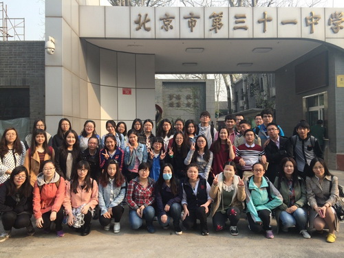 2016年3月31日,2013级全体师范生在侯桂红老师和西城区教研员张逸红老师的带领下,到北京31中开展首次中学现场教育见习。