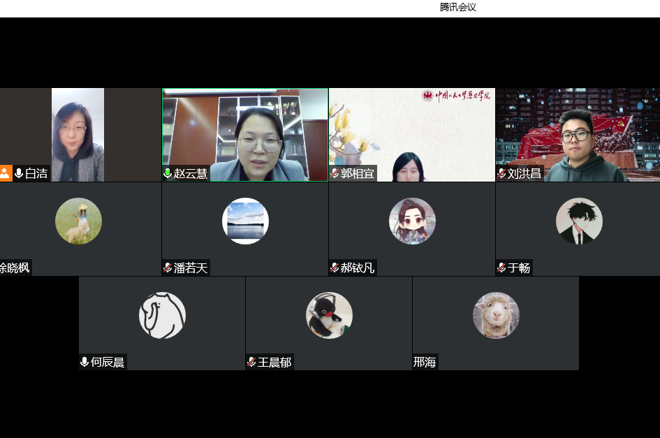 3月17日下午,中国人民大学德赢vwin体育官网登录党委副书记白洁带队与德赢官网学工进行线上交流学习。会议由德赢vwin体育官网登录党委副书记赵云慧主持,中国人民大学德赢vwin体育官网登录党委副书记白洁、团委书记郭相宜、团委副书记刘洪昌、德赢vwin体育官网登录学生工作办公室潘若天老师、张辞修老师、徐晓枫老师及两院学生会、研究生会等学生组织负责人参加了座谈。
