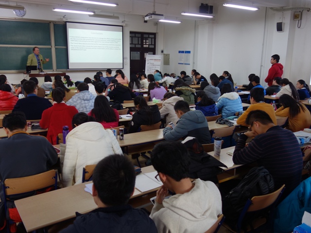 在一个多小时的英语授课中,杜普莱教授没有采用传统的政治史讲述方式,而是从军事和技术史角度呈现了拿破仑战争结束一个世纪以来法国海上力量的兴衰、海上外交政策的变化和与各国海军力量竞争的历史,对《世界近代史》课堂教学中涉及的美国革命、拿破仑战争、拉美独立运动、工业革命、克里木战争、德意志统一等重大历史事件进行了有力串联,丰富了课堂教学形式和内容,也锻炼了学生的英语能力。讲座后,杜普莱教授回答了学生提问。贾珺副教授对杜普莱教授的授课进行了简要点评,对其专程来德赢官网与本科生分享学术前沿成果表示衷心感谢,希望双方在海军史、国际关系史等研究领域互通有无,持续开展合作,提升学术交流水平。
