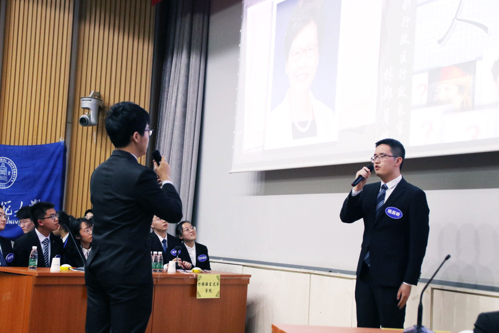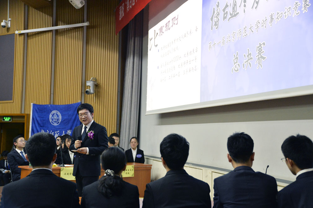 比赛由德赢vwin体育官网登录党委学生工作部、德赢vwin体育官网登录主办,“形势与政策”小组承办,旨在鼓励我校学生关心时事、开阔视野,展现师大学子立志高远、修身求知的优秀品质和胸怀祖国、放眼世界的博大气度。本届比赛历时近一个月,共有来自20个学部院系的35支代表队,105名选手报名参加。4月11日下午,经过初赛选拔,德赢vwin体育官网登录、法学院、外国语言文学学院、地理科学学部4支代表队脱颖而出,在总决赛的舞台上一展风采。