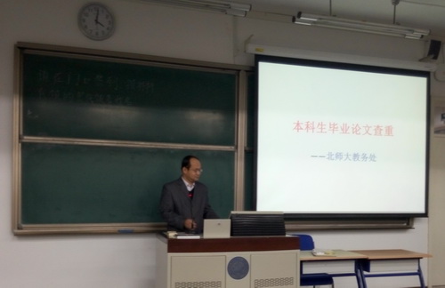 会议开始之前,由班里学习委员发放毕业论文手册、导师指导记录册等相关资料。随后,大会正式开始。首先由副院长姜海军老师作了讲话,他强调了本科毕业论文写作的必要性与重要性,并嘱咐大家认真对待此次论文的写作,一定要严格遵守学术规范,严禁抄袭。对此,姜老师还就学校对毕业论文查重的相关规定与毕业论文的检测做了详细说明,并强调2017年学校对本科毕业论文的查重要求较去年有了大幅度提高,望引起同学们注意。此外,姜老师还就毕业论文的写作流程、时间安排及开题、答辩等相关事宜做了详细介绍。