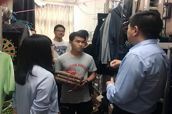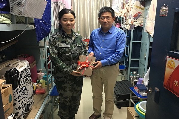 响应国家应征入伍号召,今年德赢官网共有两名本科生顺利入伍,分别是2016级本科生杨宇和2015级本科生张颖。学院分党委对此高度重视,分党委书记郭家宏、分党委副书记王卓凯、2016级本科班班主任倪滕达、2015级本科班班主任江天岳和专职辅导员李力专程到宿舍走访慰问了两名入伍大学生。