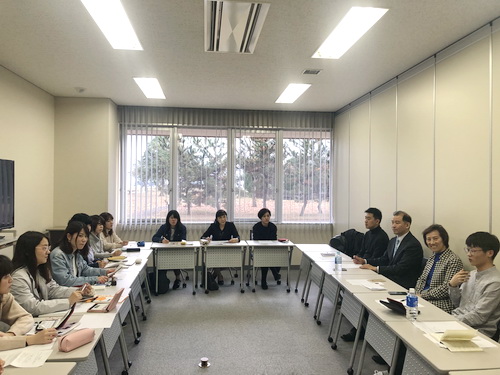访问期间,代表团为新潟国际情报大学汉语专业学生上了汉语口语课,介绍中国传统文化和中国人的观念,增进了日本学生对中国的了解。还旁听了新潟国际情报大学臼井阳一郎教授的《欧洲现代论》课程,感受了日本高校的上课氛围。期间,代表团还与日本师生举行了座谈会。新潟国际情报大学国际文化学部区建英教授、佐藤若菜老师出席座谈会。双方就中日关系、中国音乐、中国婚姻、日本文化、中国方言、中国印象等感兴趣的话题进行了广泛的交流与讨论。区建英教授对中方师生的发言进行深入翻译,大家积极讨论,气氛友好热烈,增加了对彼此国家的了解与认识。