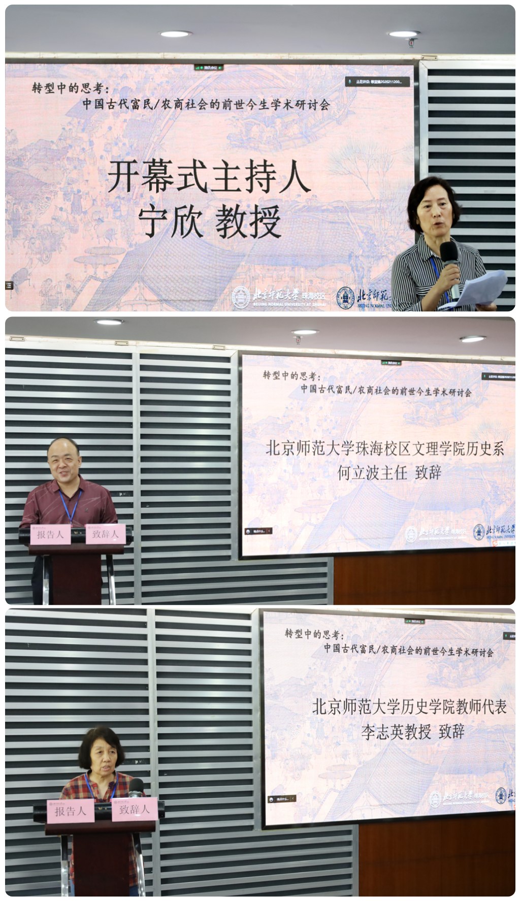 德赢vwin体育官网登录张皓院长,通过远程视频的方式对本次会议表达祝贺和期愿,对本次会议的顺利召开及研究主题给予高度评价。珠海校区文理学院历史研究室何立波主任介绍了目前北师大珠海校区的学科建设,预祝会议圆满成功。北师大德赢vwin体育官网登录教师代表李志英教授致辞,并从绅商的视角出发,认为绅商对于推进中国古代富民农商学术的发展有着重要的作用。
