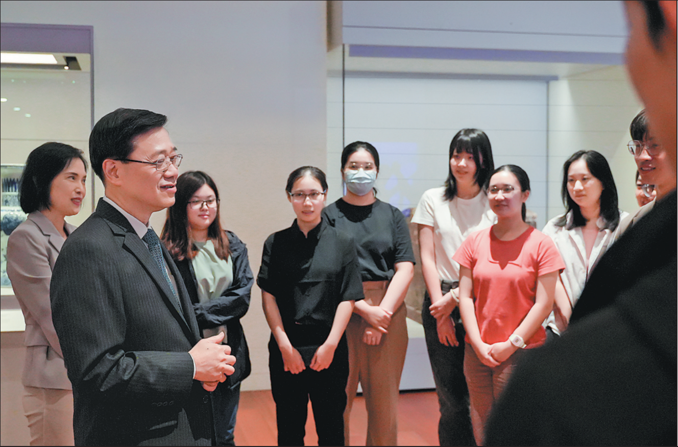 李家超与同学们亲切交流(图片来源:中国日报相关报道)