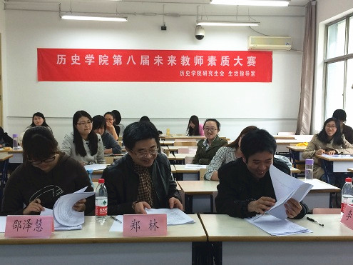 本次比赛分为两个分赛场同时进行,每个赛场有三位评委、八名选手,每位选手进行十分钟的试讲,最后根据评委的打分各取5名选手进入决赛。虽然只是短暂的十分钟,选手们准备的内容却是非常详实,小农经济、解放战争、洋务运动、新航路的开辟、美国联邦政府的建立、新中国初期的外交、戊戌变法、罗斯福新政、古代希腊民主政治、英国君主立宪制的建立、从计划经济到市场经济、文艺复兴巨匠、古罗马的政治与法律等等。各位选手经过精细的准备,或运用多媒体,或与学生互动,或引经据典,都各具特色地将课程以最生动的形式展现在大家面前,赢得在场老师、同学的阵阵掌声。