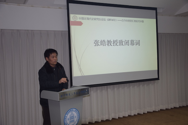 经过一天紧张而热烈的讨论,2016年度中国近现代史研究生论坛于12月7日下午5时举行闭幕式。闭幕式上,德赢vwin体育官网登录张弘毅、北京大学历史学系李乐、中国社会科学院研究生院肖瑞宁分别代表各自分组做了学术小结,张皓教授致闭幕词。