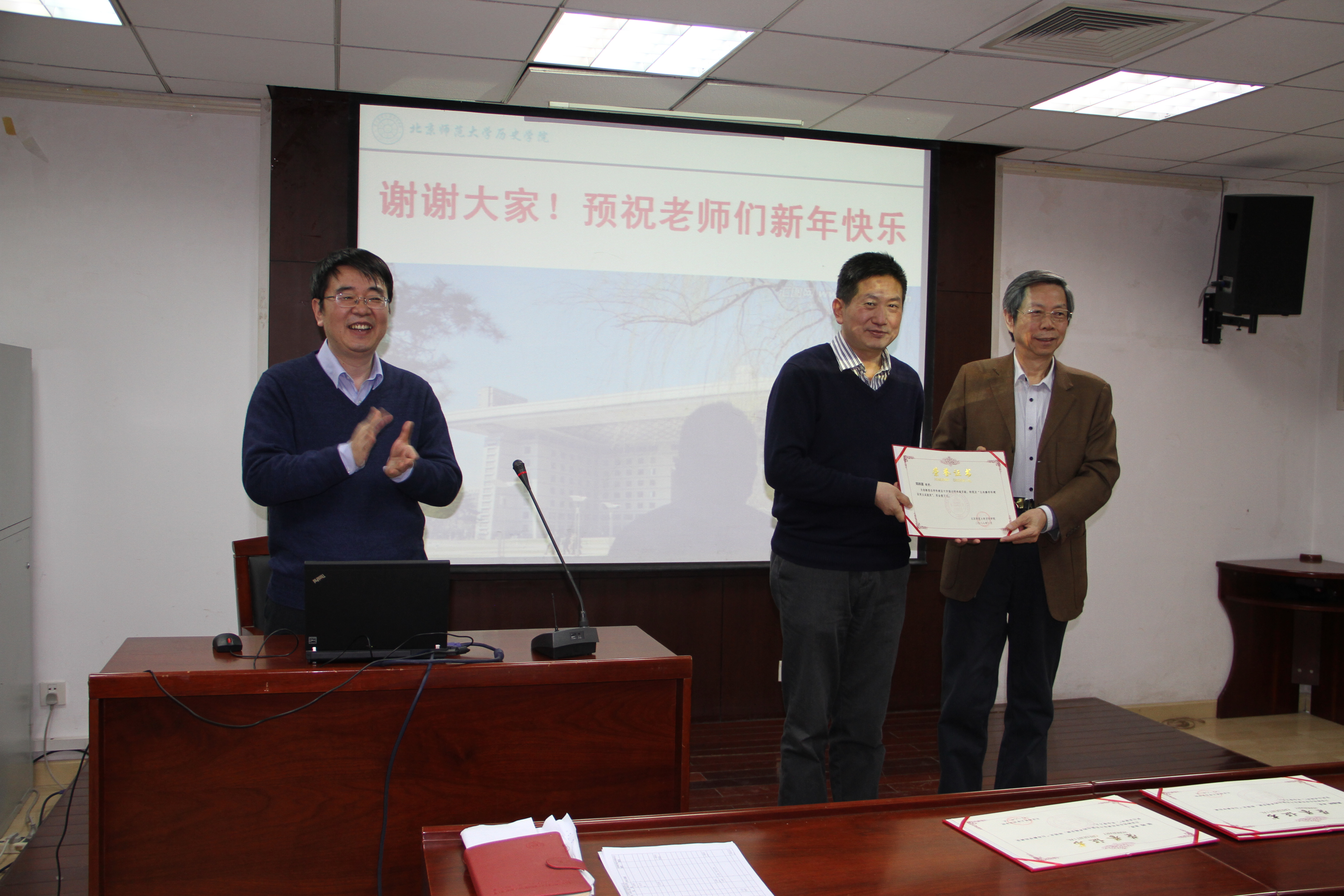 之后,学院召开科研奖励会,对一年来在科学研究等方面成绩突出的中国古代史、中国近代史、史学理论与中国史学史、世界上古中世纪史、考古学与博物馆学等5个教研室进行了表彰,授予其突出贡献奖。刘家和、瞿林东、晁福林、郑师渠、张皓等5位教授在学科建设中贡献卓越,学院为其颁发了“白寿彝学科建设突出成就奖”。2018年,德赢vwin体育官网登录将继续深入学习党的十九大精神,以习近平新时代中国特色社会主义思想为指导,贯彻落实学校第十三次党代会精神,为学校“双一流”建设贡献力量。