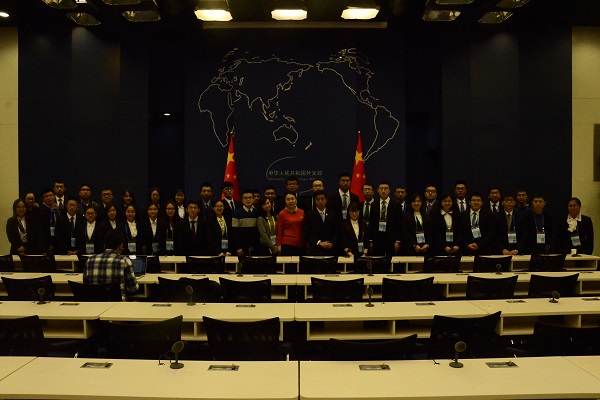 2016年11月22日下午,应外交部部部长王毅、党委书记张业遂的邀请,德赢官网学生代表前往外交部,作为高校代表观摩当天下午的例行记者会,并在会后与外交部新闻司相关负责同志进行了面对面交流。德赢vwin体育官网登录专职辅导员李力老师,“形势与政策”小组组长张慧,秘书长张铭,原副组长白佳鑫,原组长张俊毅,原秘书长彭代琪格,组织顾问朱丁睿,外联顾问王聿闻,老成员代表杨培艺、刘骥跃、叶骏、贺天行、高鑫、卢冰屿等出席了活动。校团委组织部(青年团校)负责人李金东、北京大学研究生会学生代表等也应小组邀请参加了活动。