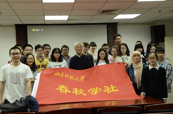 最终,本次讲座圆满结束,春秋学社到场成员和张书才老师合影留念。张书才老师的讲解,不仅让听众系统地了解了曹雪芹的家族背景、清代旗籍与族属的划分,而且让大家认识到文学与历史有着密不可分的关系,对文学作品进行解读时要结合一定的历史知识,不可造空中楼阁。