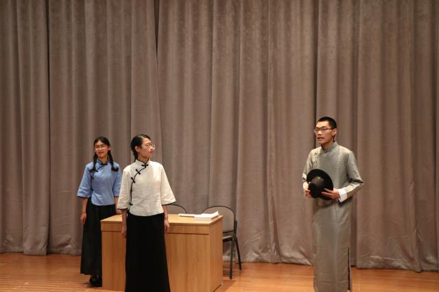话剧汇演由胡小溪老师担任总策划,各学生组织负责人负责执行。本次汇演从大处著眼、小处演绎,以时间为轴,选取五四运动百年以来的重大历史阶段,配以声情并茂的时代背景介绍,生动展现了近现代浪潮中学界、商界乃至普通百姓的历史抉择与生活细节,传达了回顾与铭记历史、展望与希冀未来的深刻意义。