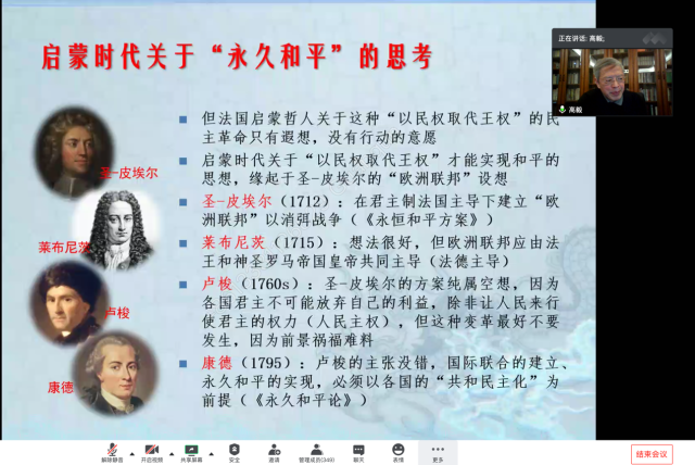 2020年10月28日晚,北京大学历史学系教授、著名法国史专家高毅老师应邀为德赢官网师生作“法国大革命意义新探”主题讲座。此次线上讲座为德赢官网京师史学名家前沿系列讲座之一,由德赢vwin体育官网登录世界近代史教研室主任庞冠群老师主持,吸引了约350名高校师生及社会听众。