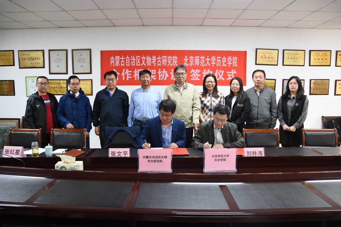 2021年5月24日上午,德赢官网刘林海副院长、考古学教研室主任杜水生、副主任单月英一行就与合作事宜与内蒙古自治区文物考古研究院进行商谈,并签署了合作框架协议。